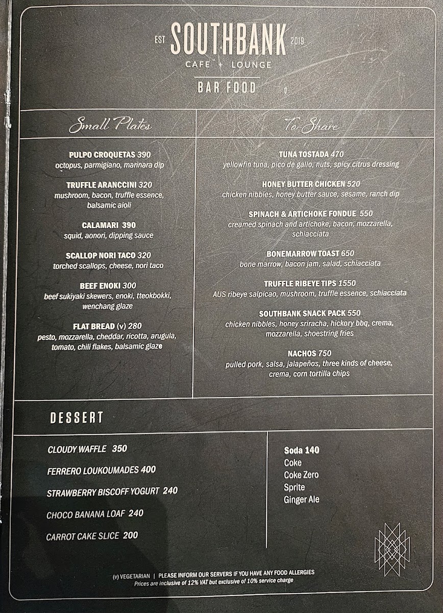 Welcome to Southbank Cafe + Lounge - Estancia, where casual dining meets an upscale lounge vibe. Nestled in the heart of Estancia, this venue radiates elegance with its dark, cozy ambiance—ideal for either intimate dinners or lively gatherings.